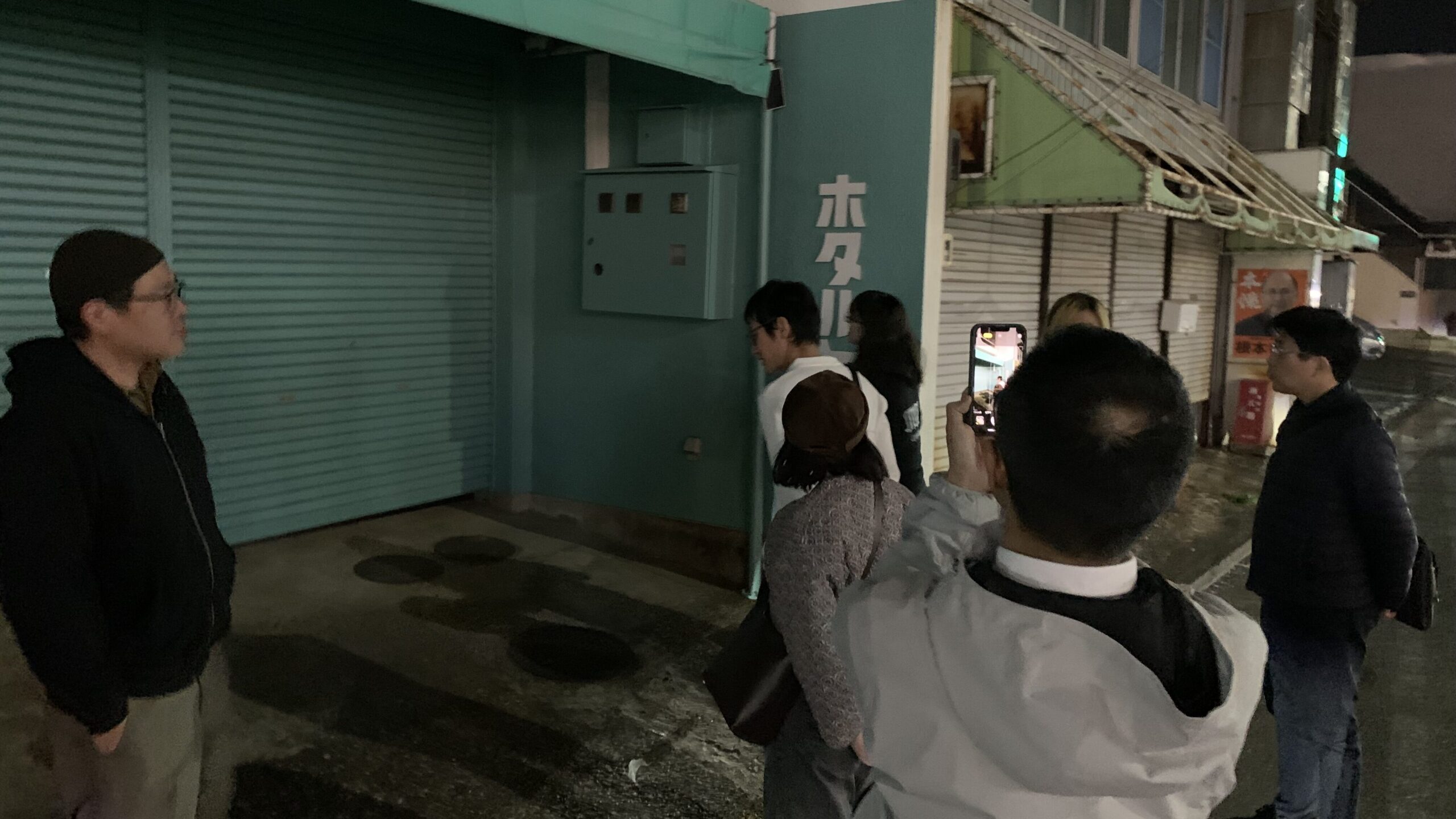 当日も、食事のあとに夜の南栄を歩くまち歩きへ出かけました。