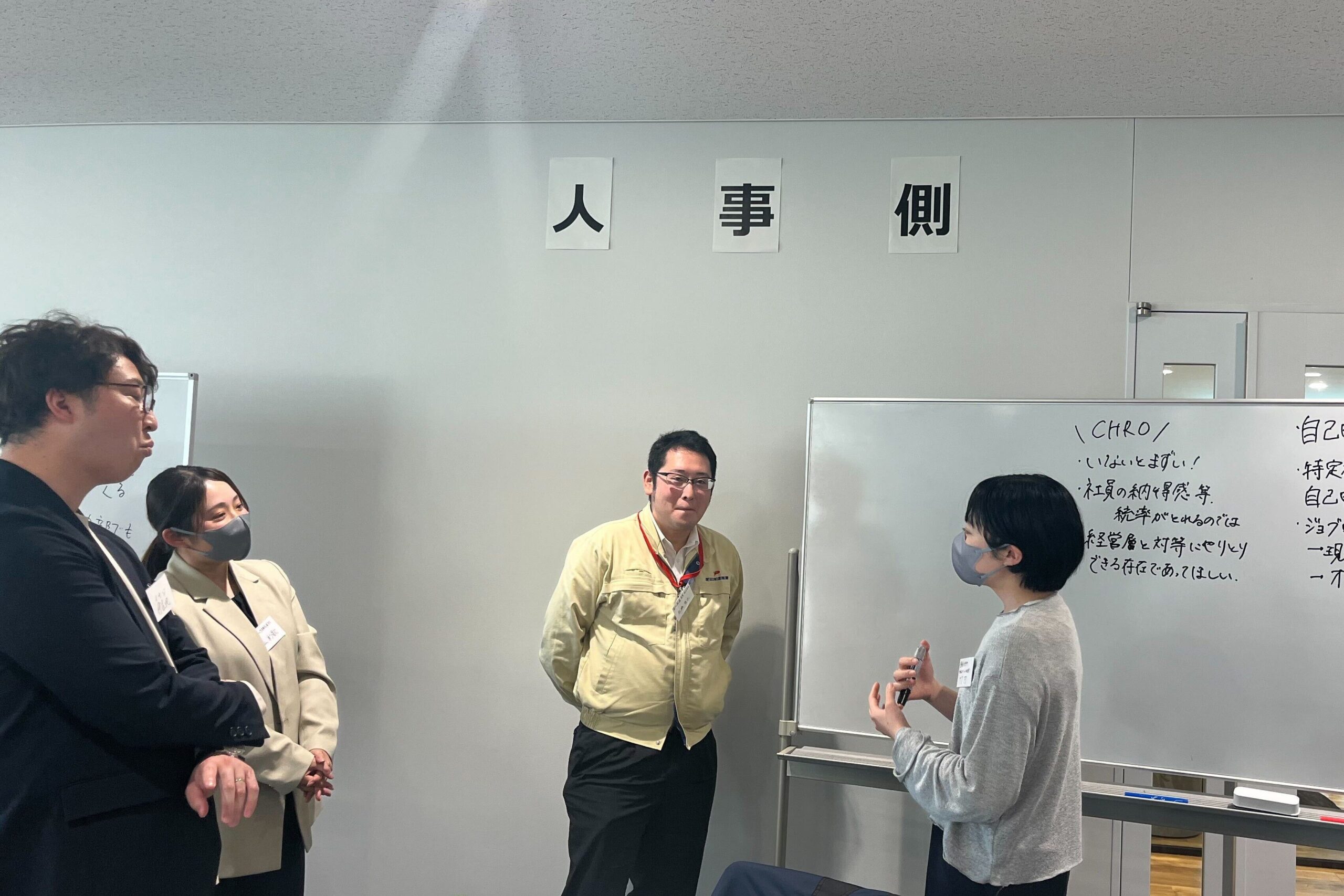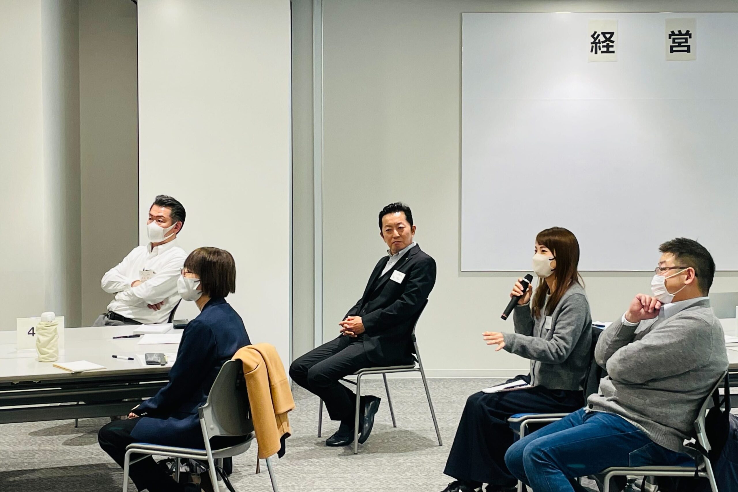 当日は、経営・幹部層と人事スタッフ・社内キャリアコンサルタント(※1)の2グループに分かれて意見交換を行いました。
